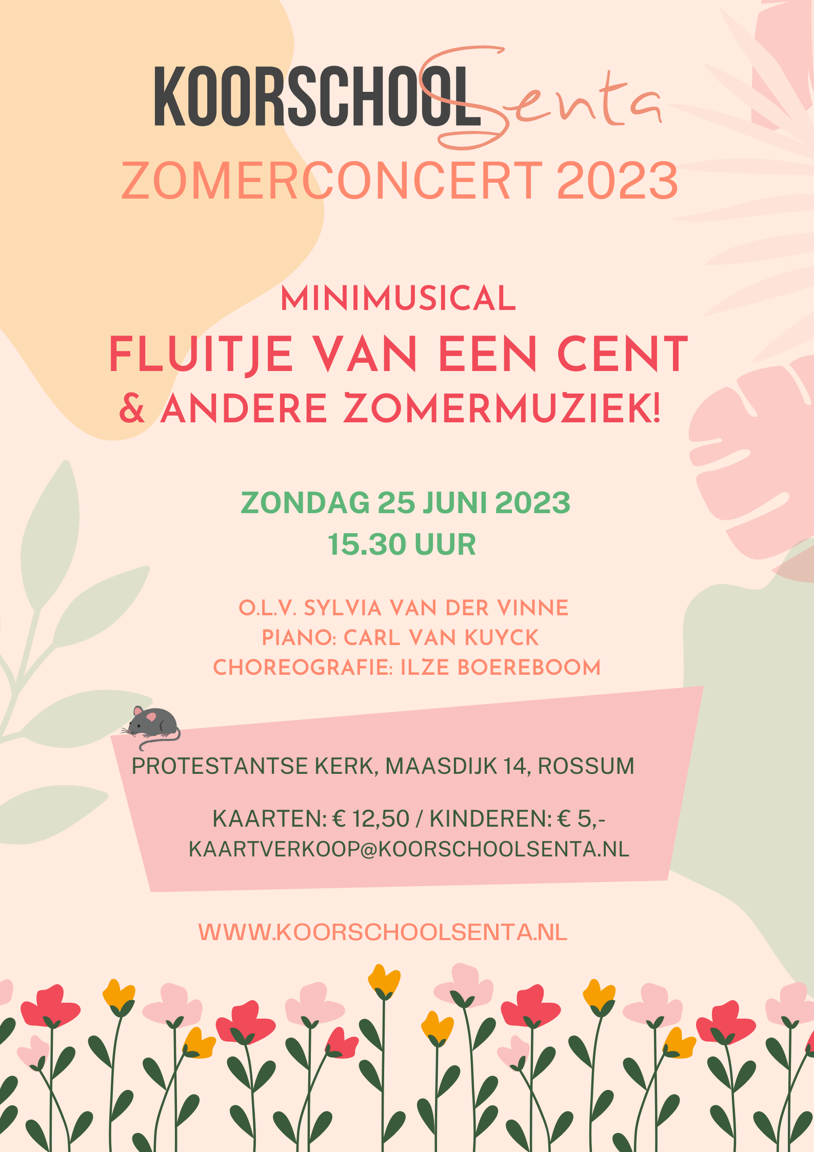 Op 25 juni zingen wij weer een eigen Zomerconcert. Als altijd met ons Kinderkoor en Jeugdkoor en het Senta Ensemble. Maar deze zomer ook met jonge sterren en volwassen zingende acteurs/acterende zangers-zangeressen die zich hebben aangemeld voor onze audities van de minimusical Fluitje van een cent.
